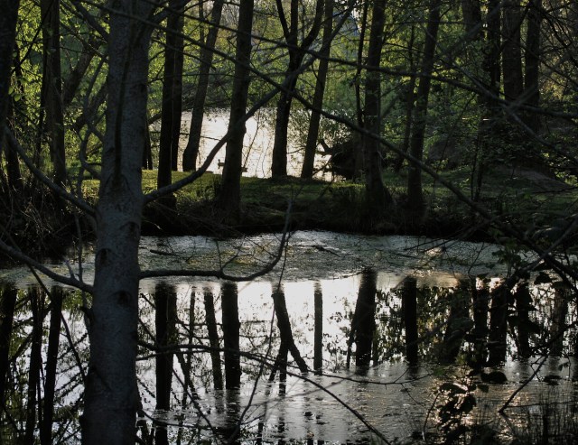edge where mossy stones meet water,